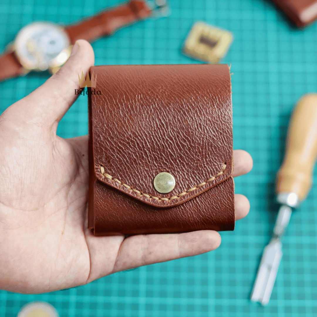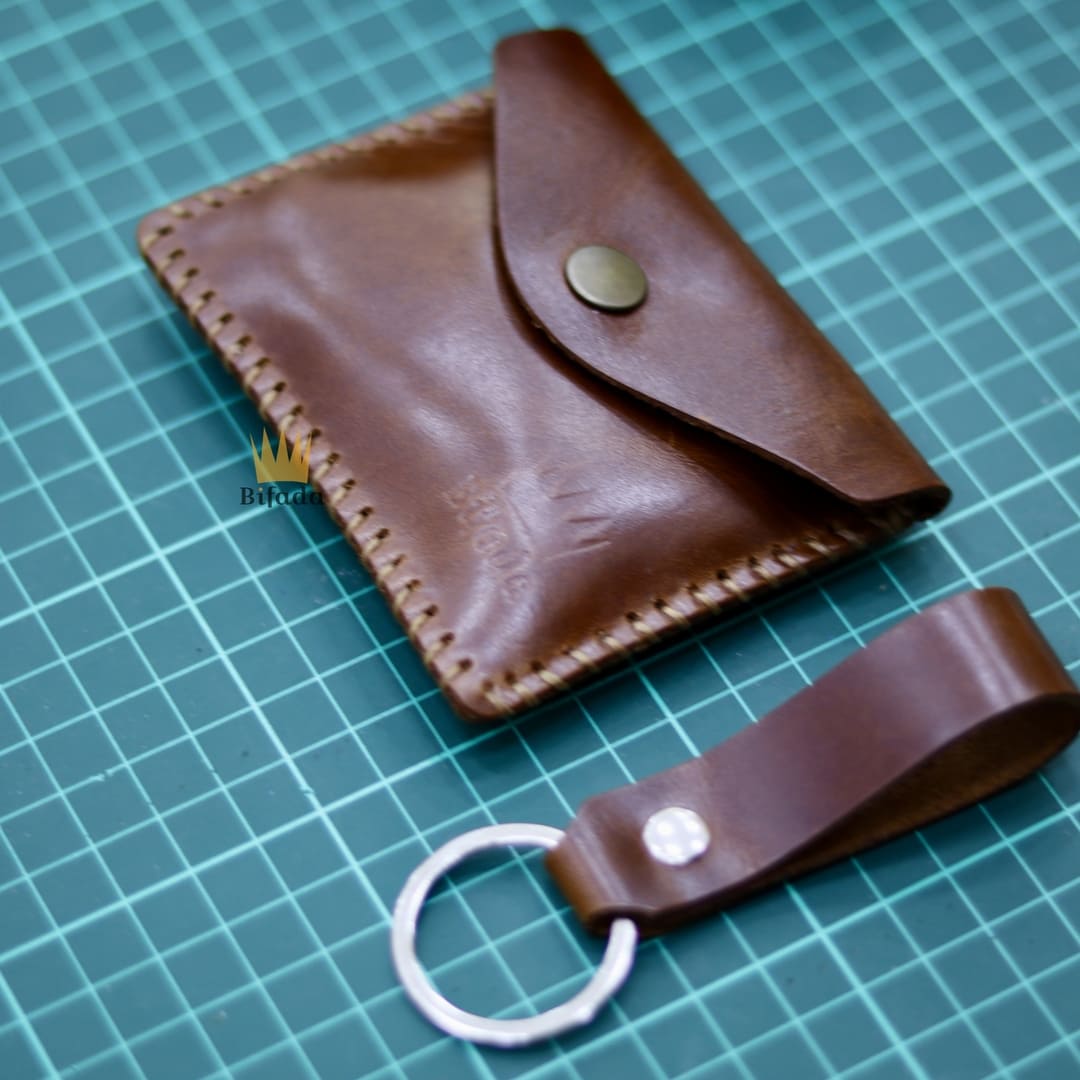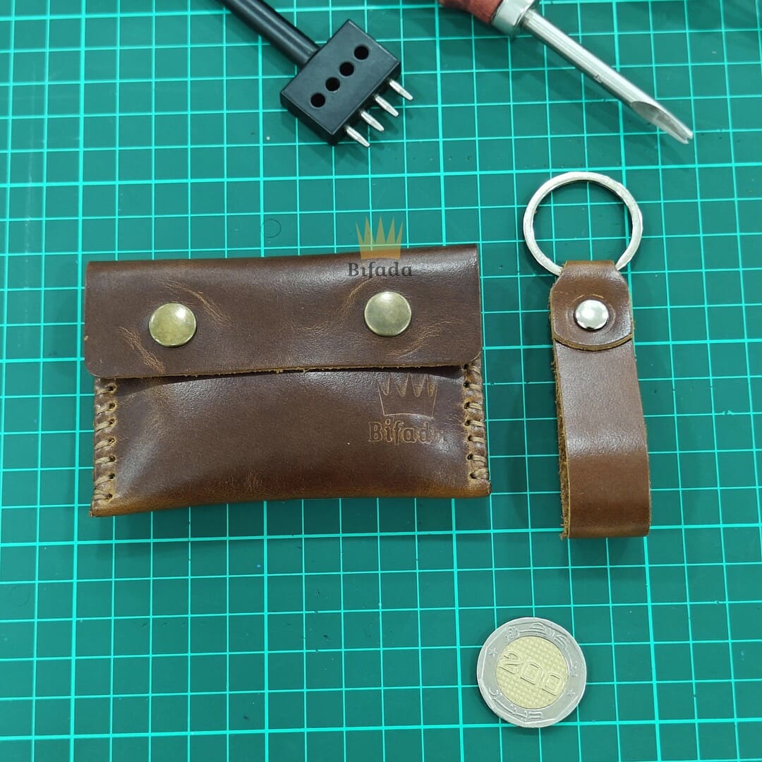 محفظة من الجلد الطبيعي لحمل النقود المعدنية أو البطاقات + علاقة مفاتيح مجانا (اللون القهوي) BP