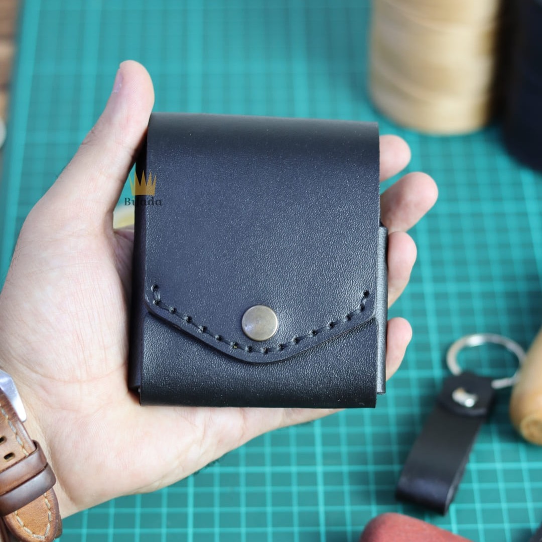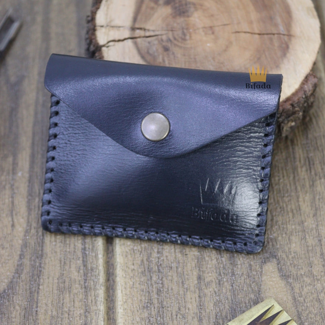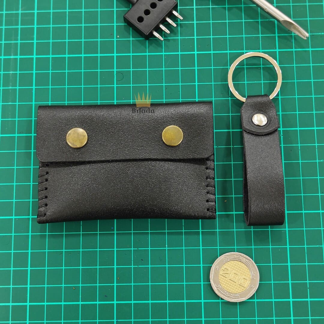 محفظة مميزة من الجلد الطبيعي لحمل النقود المعدنية أو البطاقات + علاقة مفاتيح مجانا (اللون الأسود) CP