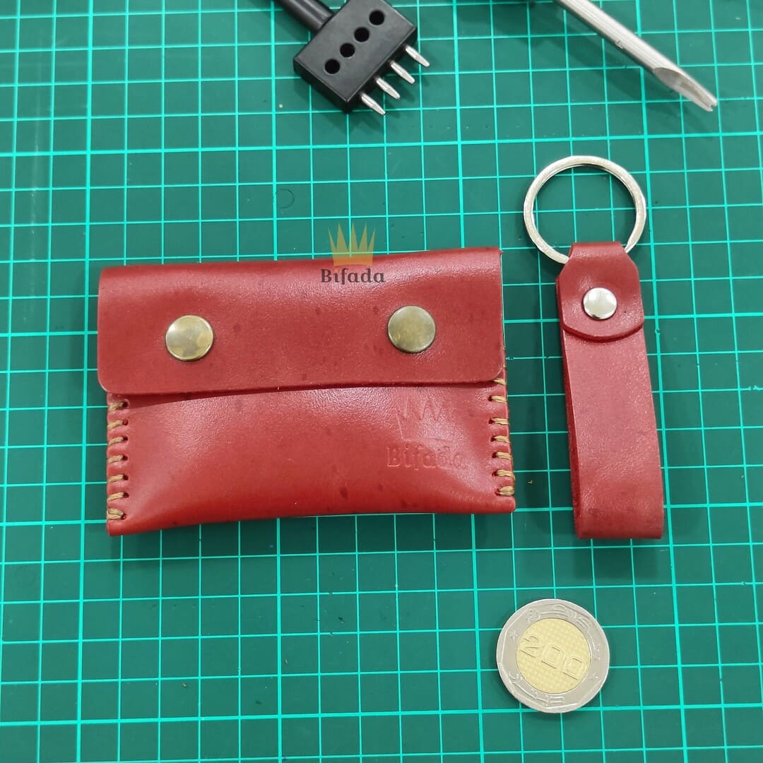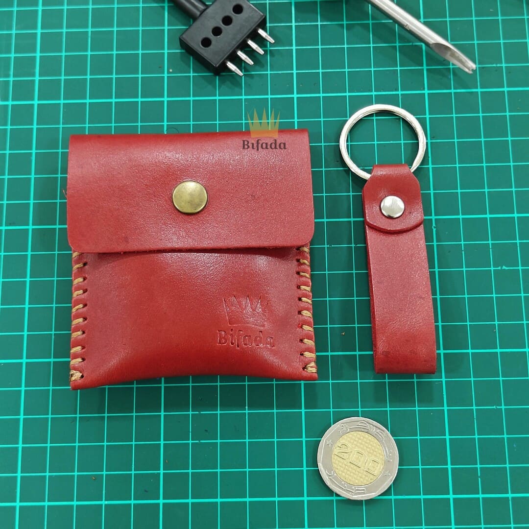 محفظة من الجلد الطبيعي لحمل النقود المعدنية أو البطاقات + علاقة مفاتيح مجانا (اللون الأحمر) BP