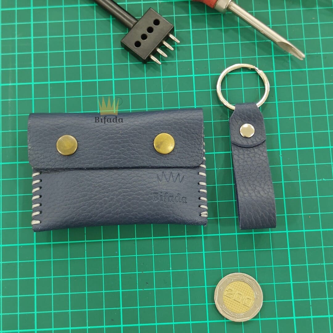 محفظة من الجلد الطبيعي لحمل النقود المعدنية أو البطاقات + علاقة مفاتيح مجانا (اللون الأزرق) AP