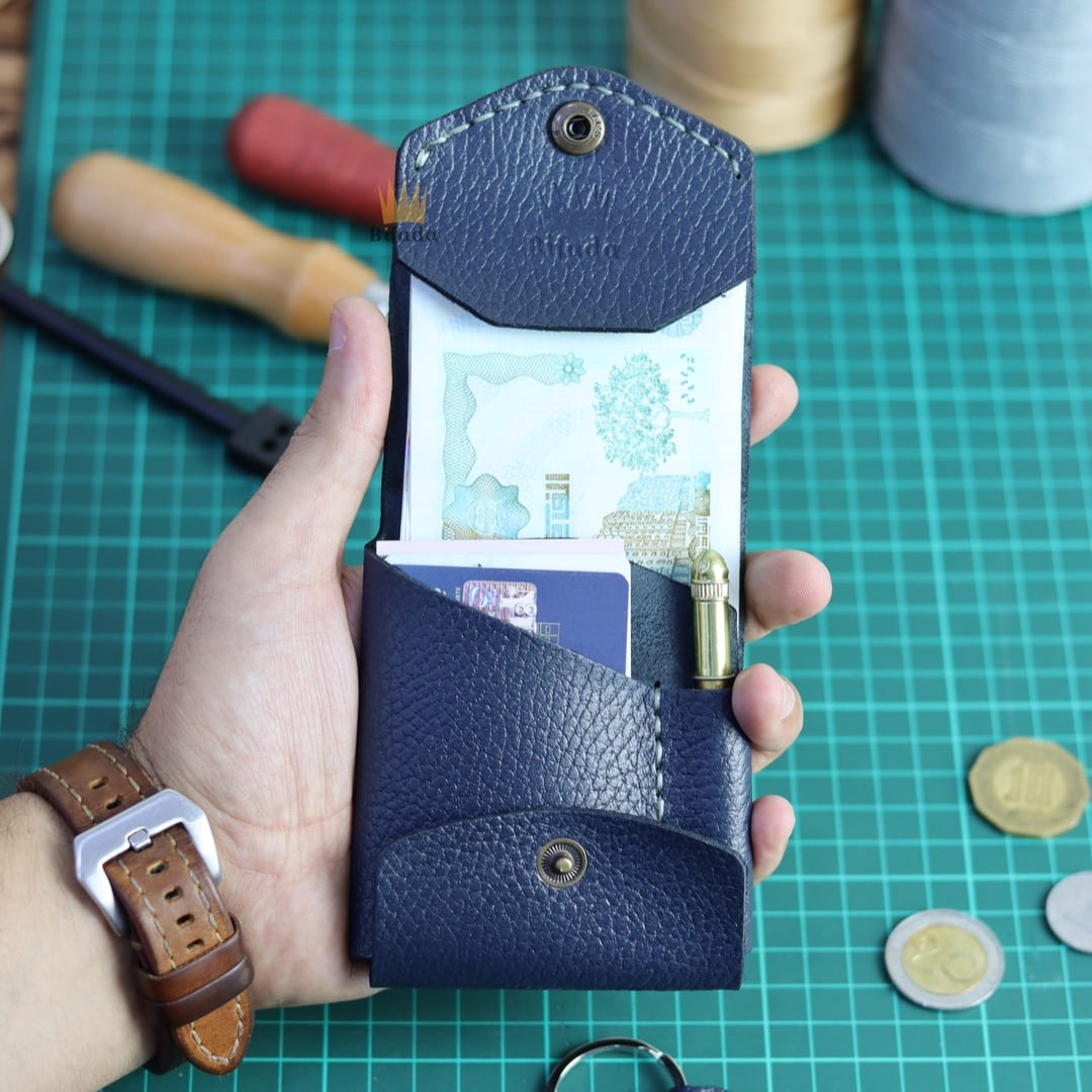 محفظة من الجلد الطبيعي لحمل النقود المعدنية أو البطاقات + علاقة مفاتيح مجانا (اللون الأزرق) BP