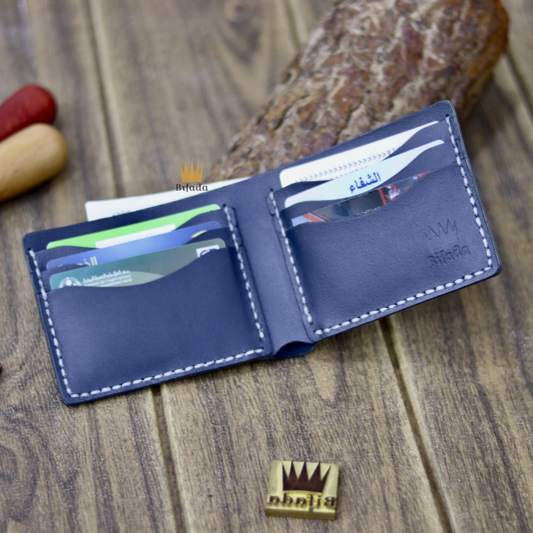 محفظة من الجلد الحقيقي الفاخر متينة مميزة وعملية. + علاقة مفاتيح هدية (اللون الأزرق)