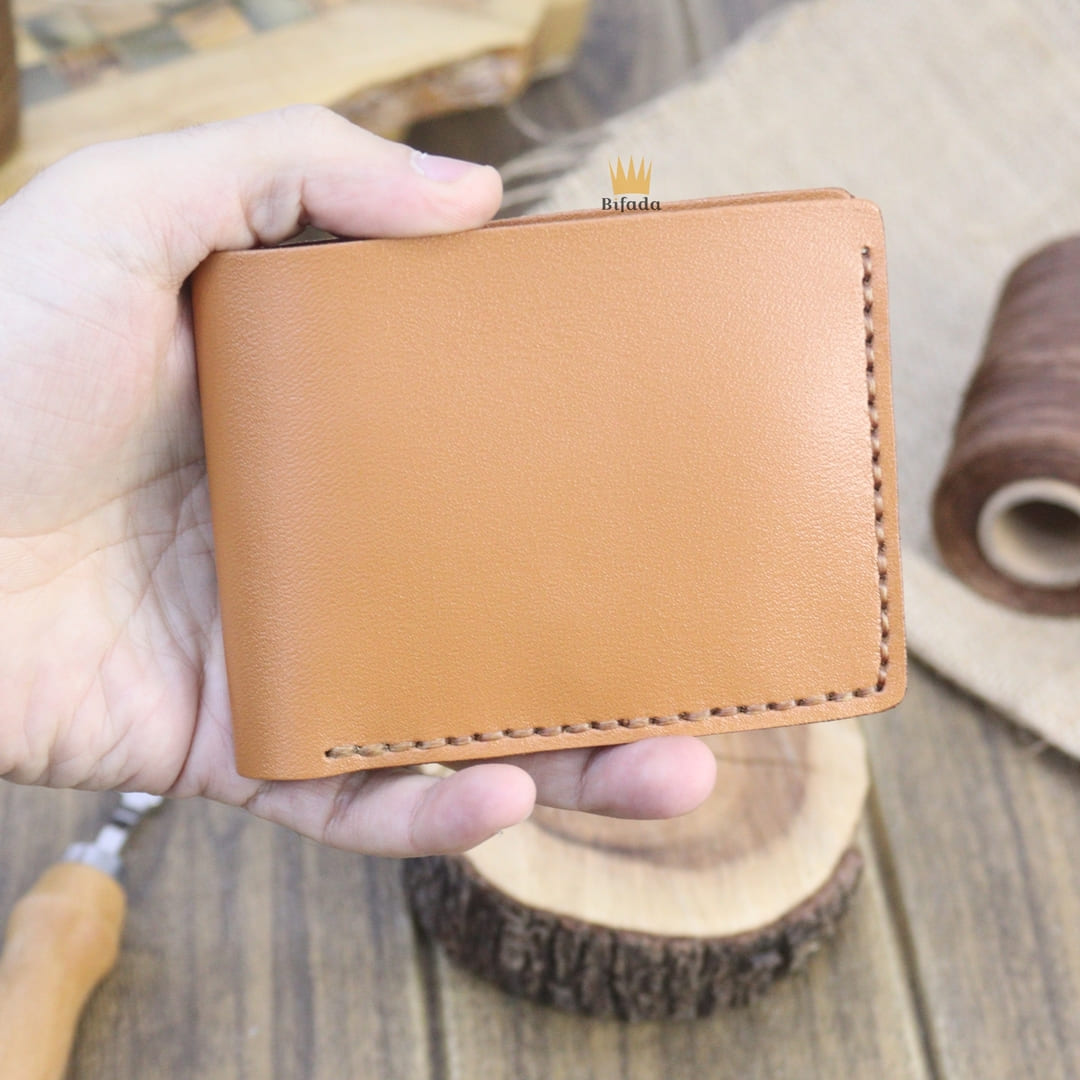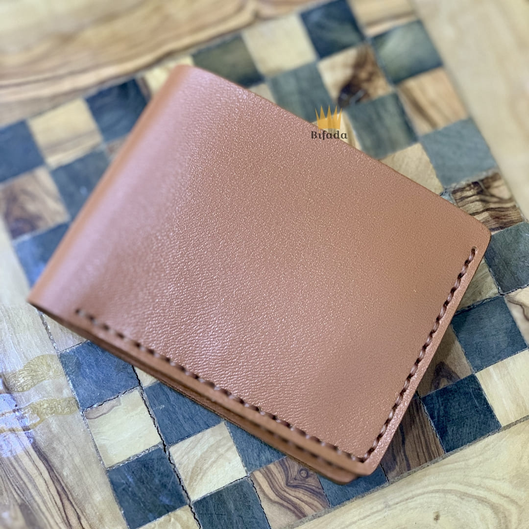 محفظة من الجلد الطبيعي لحمل النقود المعدنية أو البطاقات مصنوعة باليد (اللون القهوي) B