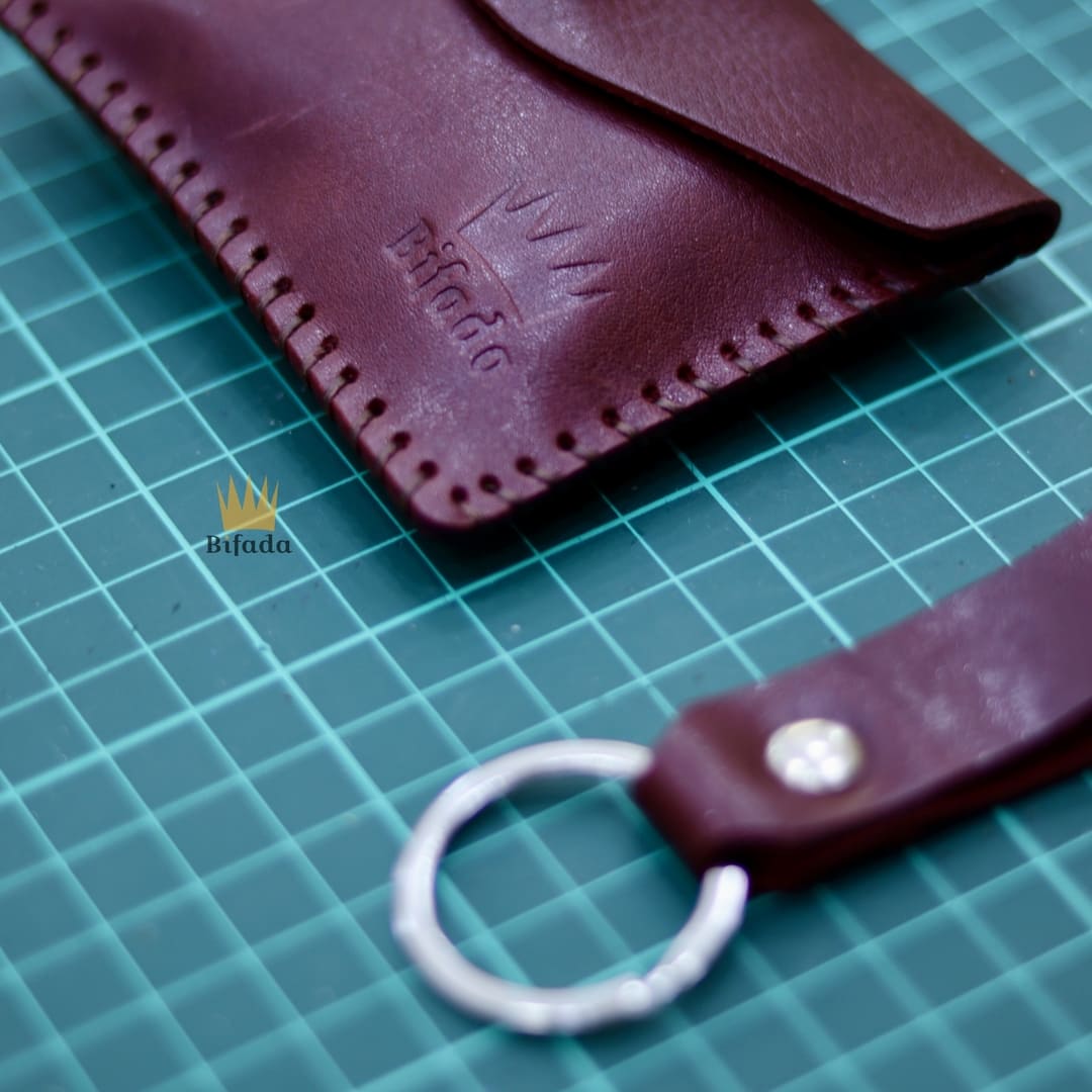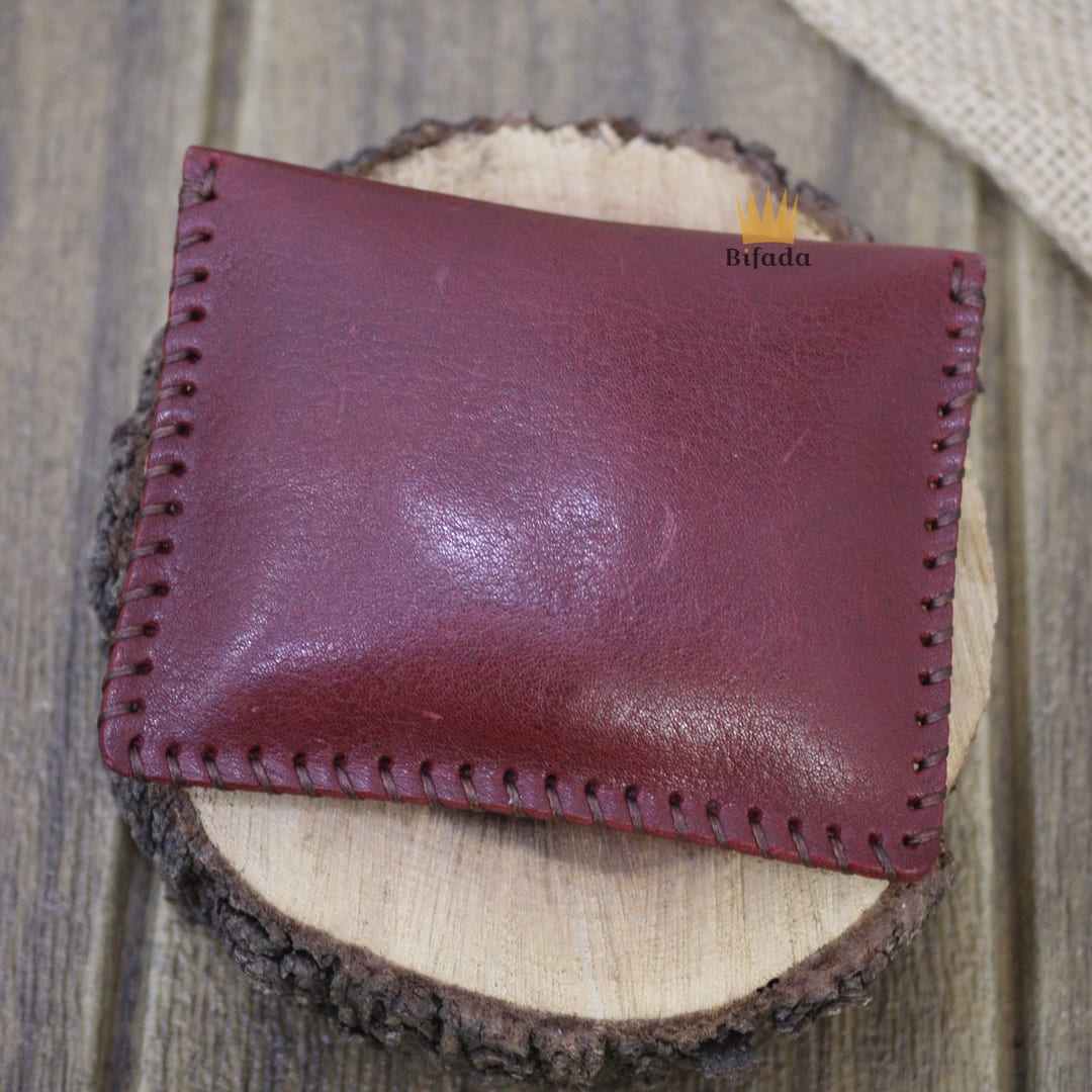 محفظة مميزة من الجلد الطبيعي لحمل النقود المعدنية أو البطاقات + علاقة مفاتيح مجانا (اللون الأحمر العنابي) CP