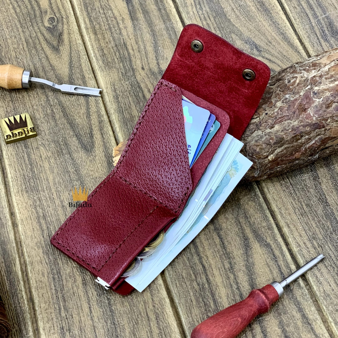محفظة من الجلد الحقيقي الفاخر متينة مميزة وعملية (الأحمر العنابي) T
