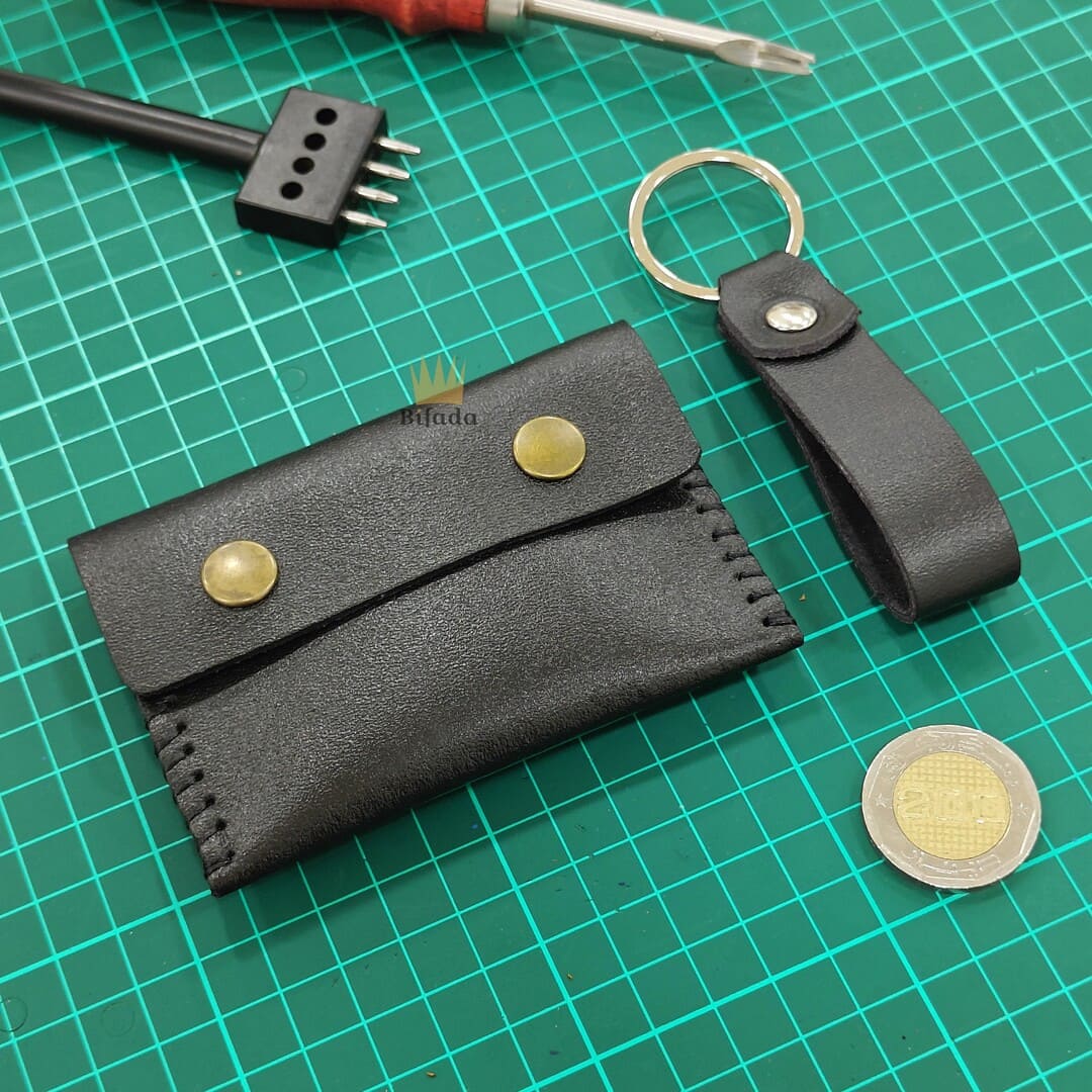 محفظة من الجلد الطبيعي لحمل النقود المعدنية أو البطاقات + علاقة مفاتيح مجانا (اللون الأسود) BP
