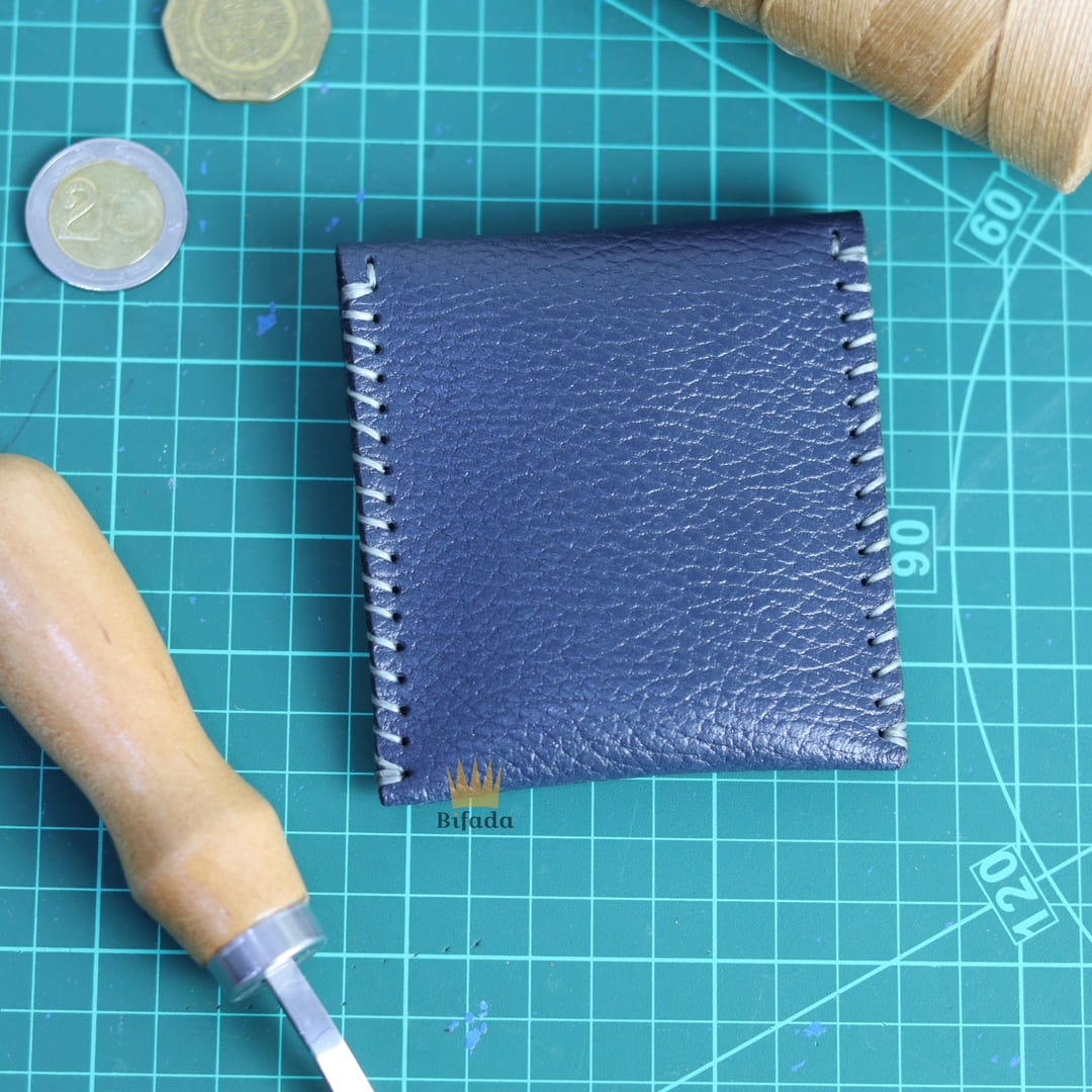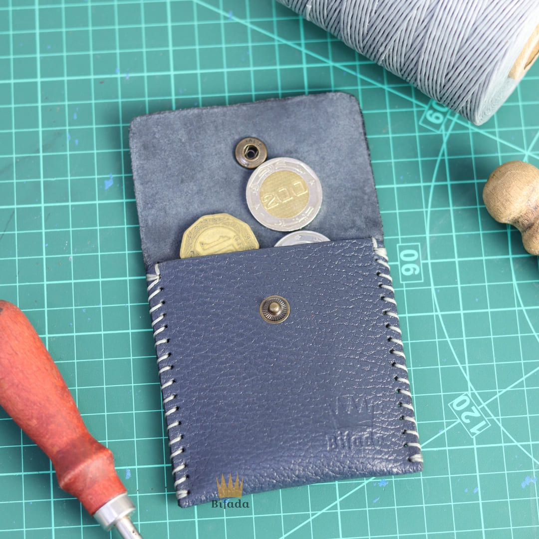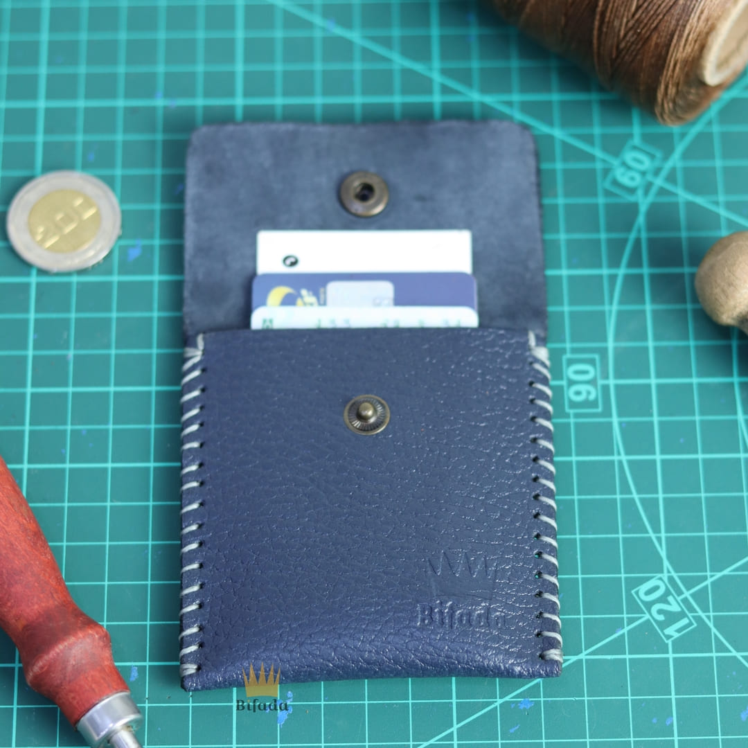 محفظة من الجلد الطبيعي لحمل النقود المعدنية أو البطاقات + علاقة مفاتيح مجانا (اللون الأزرق) AP